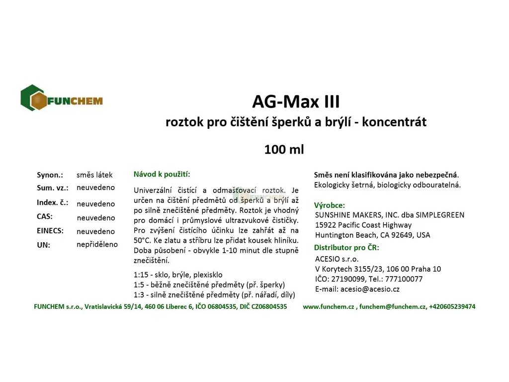 AG - Max III roztok pro čištění šperků brýlí 100 ml