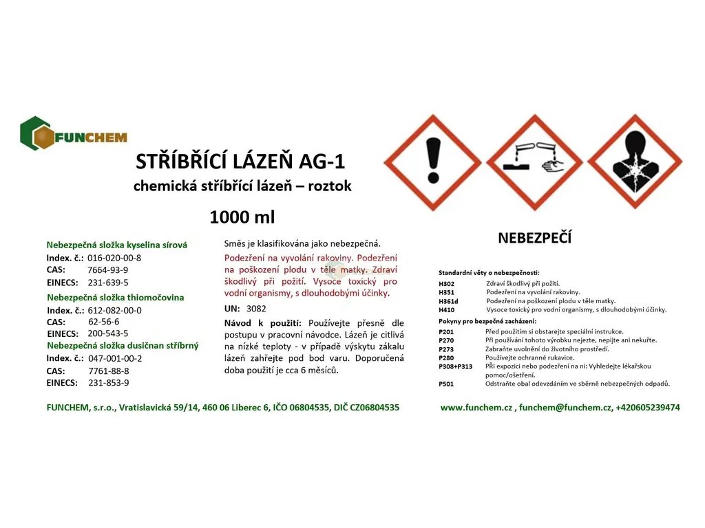 Chemická stříbřící lázeň pro měď a slitiny mědi 1000 ml Stříbřička chemická