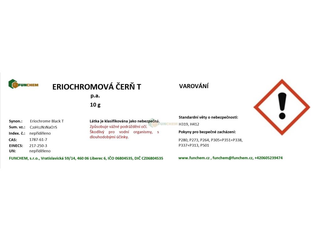Eriochromová čerň T p.a. 100 g zakoupíte online na , specializovaném e‑shopu s chemikáliemi pro laboratorní, průmyslové i domácí použití.
