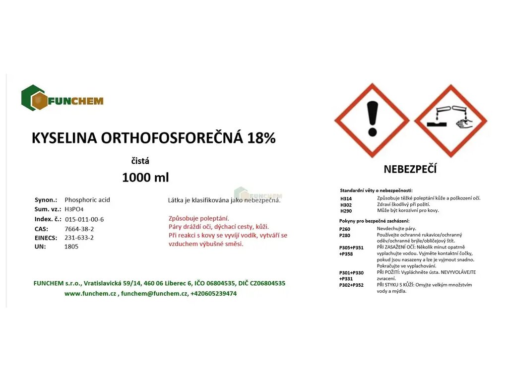 Kyselina fosforečná 18% je včelaři používána pro rozpouštění včelího vosku.