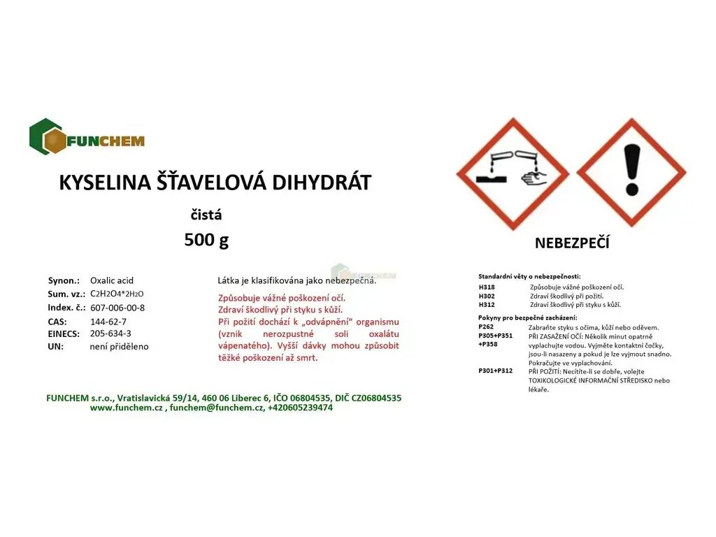 Kyselina šťavelová dihydrát č. 500 g Kyselina oxalová, Jetelová sůl