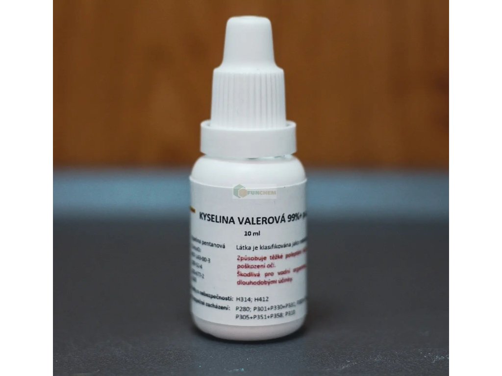 Kyselina valerová >99% 10 ml aplikační sada Valeric acid, kyselina pentanová