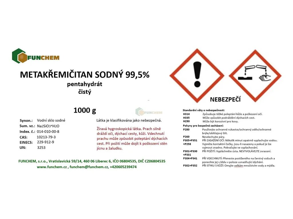 Metakřemičitan sodný pentahydrát č. zakoupíte online na , specializovaném e‑shopu s chemikáliemi pro laboratorní, průmyslové i domácí použití.