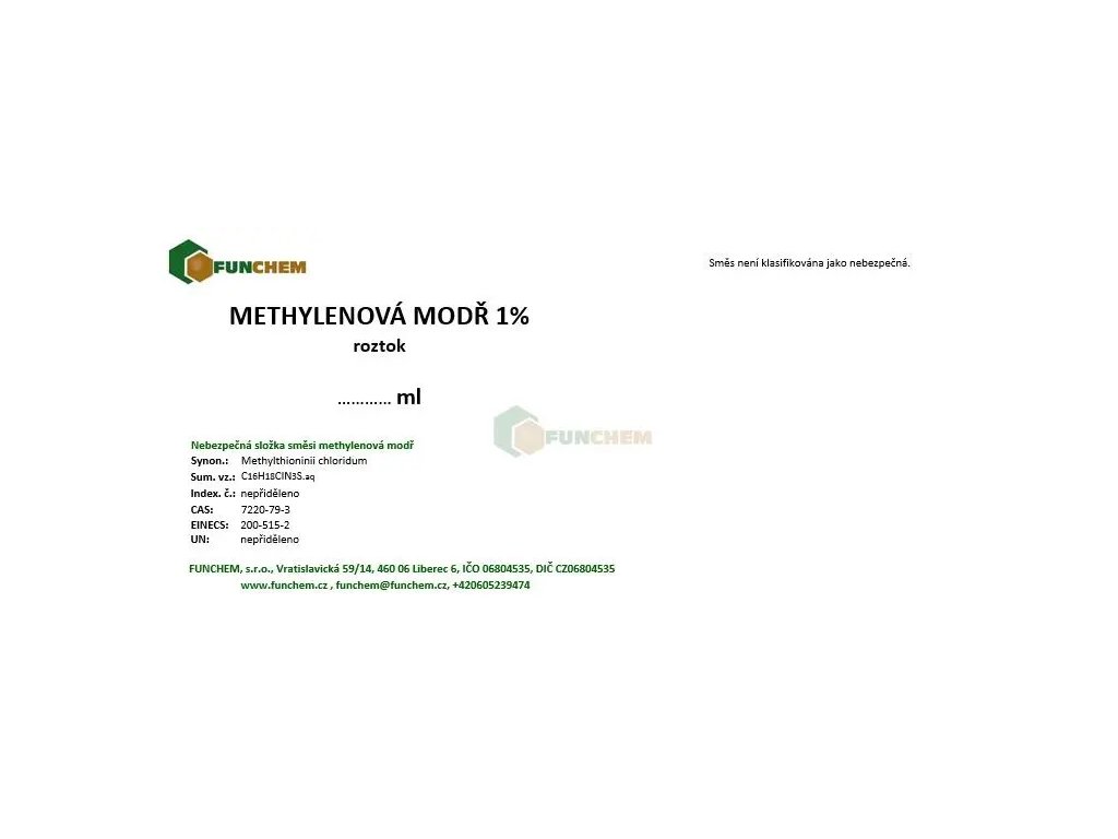 Methylénová modř roztok 0,1% 100 ml zakoupíte online na , specializovaném e‑shopu s chemikáliemi pro laboratorní, průmyslové i domácí použití.