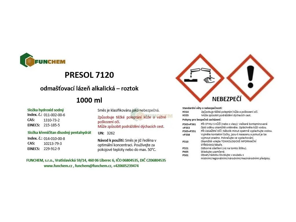 Odmašťovací lázeň alkalická PRESOL 7120 - roztok zakoupíte online na , specializovaném e‑shopu s chemikáliemi pro laboratorní, průmyslové i domácí použití.