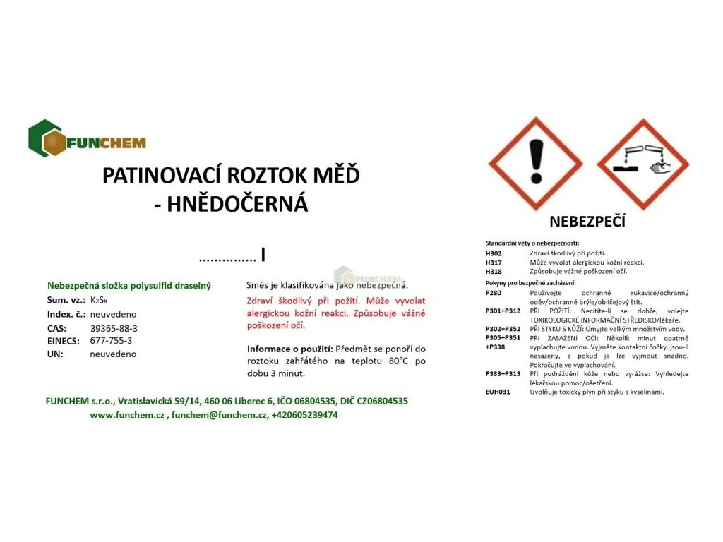 Patinovací roztok pro měď - hnědočerná zakoupíte online na , specializovaném e‑shopu s chemikáliemi pro laboratorní, průmyslové i domácí použití.