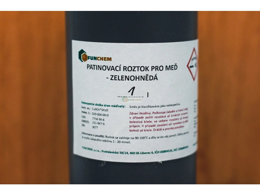 Patinovací roztok pro měď - zelenohnědá zakoupíte online na , specializovaném e‑shopu s chemikáliemi pro laboratorní, průmyslové i domácí použití.