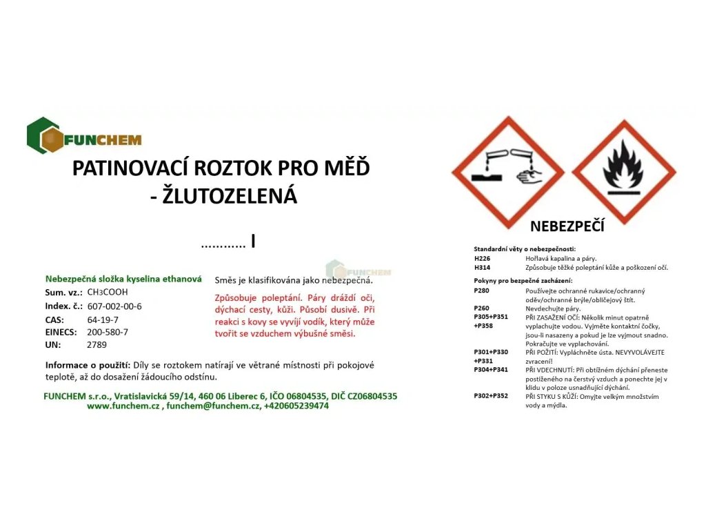 Patinovací roztok pro měď - žlutozelená zakoupíte online na , specializovaném e‑shopu s chemikáliemi pro laboratorní, průmyslové i domácí použití.