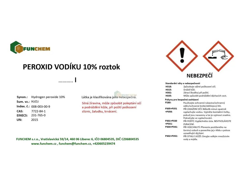 Peroxid vodíku max. 10% zakoupíte online na , specializovaném e‑shopu s chemikáliemi pro laboratorní, průmyslové i domácí použití.