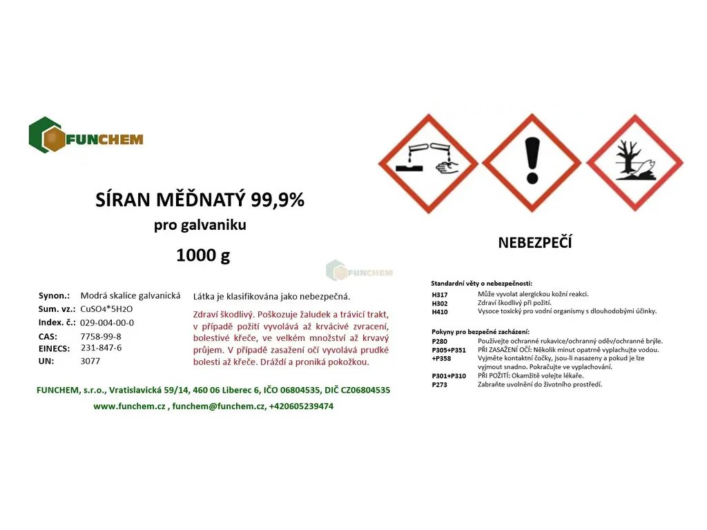 Síran měďnatý pentahydrát pro galvaniku zakoupíte online na , specializovaném e‑shopu s chemikáliemi pro laboratorní, průmyslové i domácí použití.