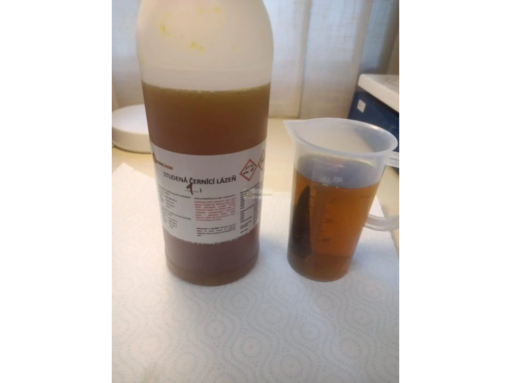 Studená černící lázeň na oceli. Lázeň se aplikuje nátěrem nebo ponorem při teplotě 20 - 40°C .