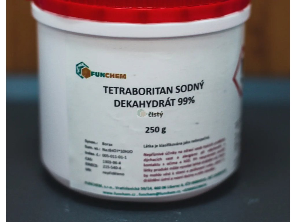 Od 1.2.2021 je prodej tetraboritanu umožněn pouze hospodářským subjektům nebo profesionálním uživatelům, bo je to prej mutagenní. Pro nákup je tedy nutné dodat IČO (přičemž nakupující musí být oprávněn objednávat tyto látky za firmu) nebo povolení.