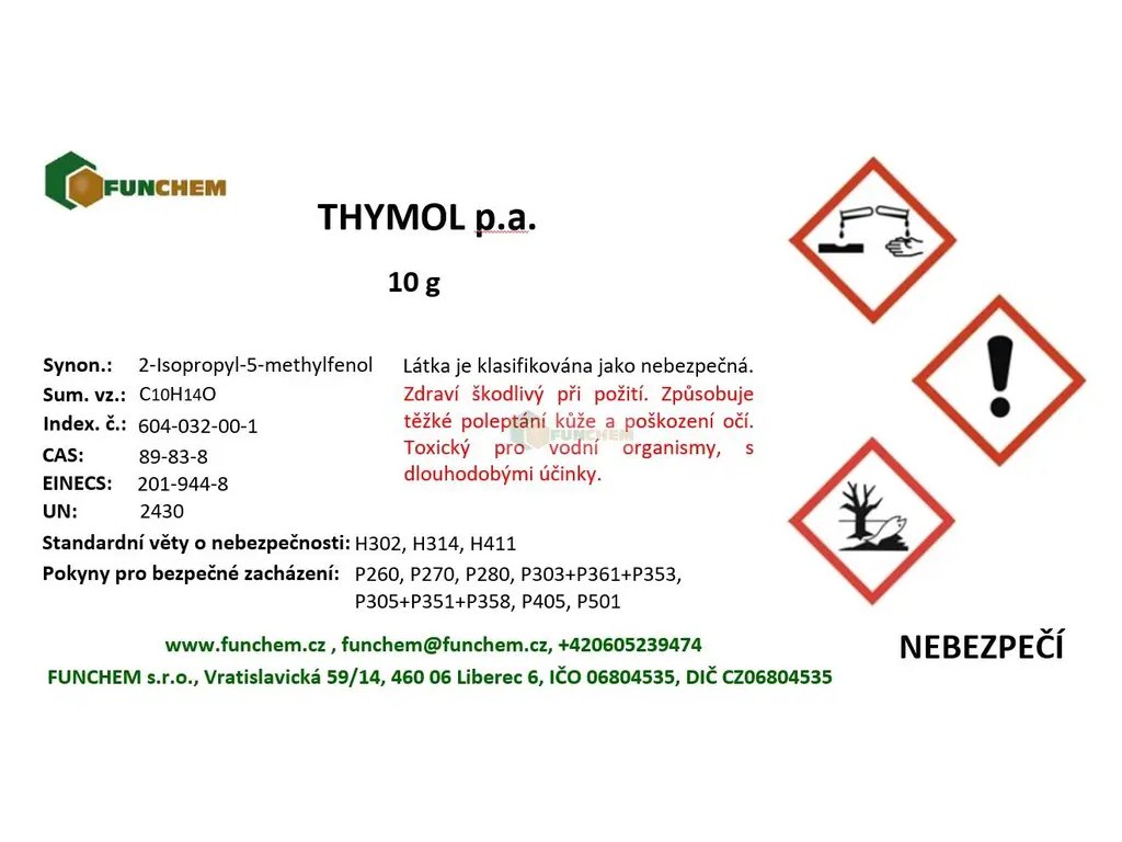 Thymol p.a. 10 g zakoupíte online na , specializovaném e‑shopu s chemikáliemi pro laboratorní, průmyslové i domácí použití.